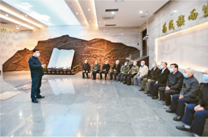 2020年4月20日至23日,中共中央总书记、国家主席、中央军委主席习近平在陕西考察。这是4月22日,习近平在西安交通大学交大西迁博物馆亲切会见西迁老教授。 新华社记者 谢环驰/摄