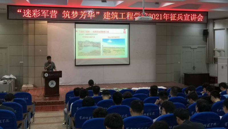为增进员工对征兵政策的了解,提高员工应征的积极性,2021年5月25日19:00-20:00,赢咖于博学楼B03教室举行主题为“迷彩军营 筑梦芳华”的2021年秋季征兵宣讲会。此次会议由辅导员胡琴老师主持,退伍老员工刘扶豪、张文豪和黄运鑫以及学院全体346名男生参加。