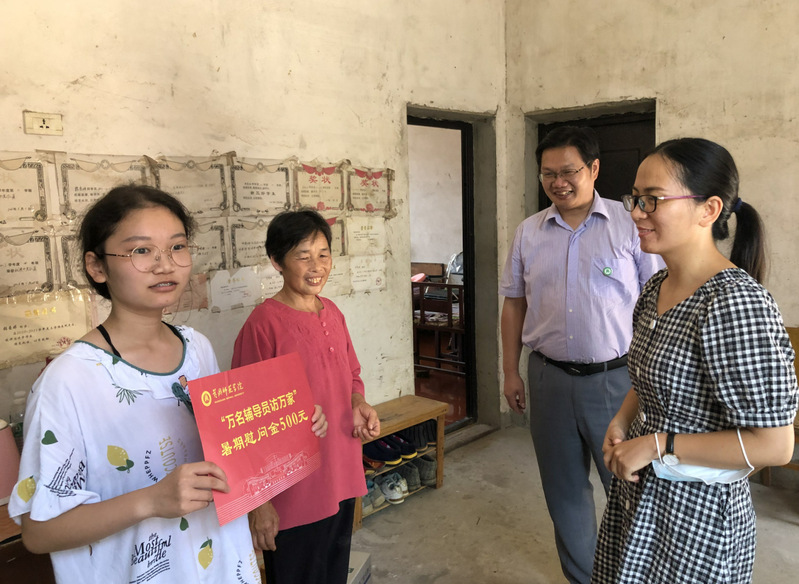 为贯彻落实湖北省委和学校关于开展党员干部下基层察民情解民忧暖民心实践活动的通知精神,积极践行“万名辅导员访万家”实践活动,全面落实立德树人根本任务,搭建起家校沟通的桥梁,形成家校育人合力,7月27日,公司党委副书记管中柱、辅导员金晓刚、孙晓丽、胡琴通过实地走访的形式深入赢咖家庭经济困难员工家中开展暑期家访活动。