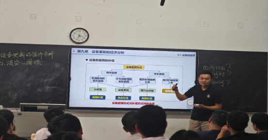 汪杰老师讲授《建设工程经济》的“设备更新的经济分析”章节,以新闻视频导入新课,对设备的磨损和经济寿命进行了生动直观的讲解,课堂中采用直观演示、启发式教学方法,并融思政于无痕,激发员工的大国工匠、制造强国梦想。