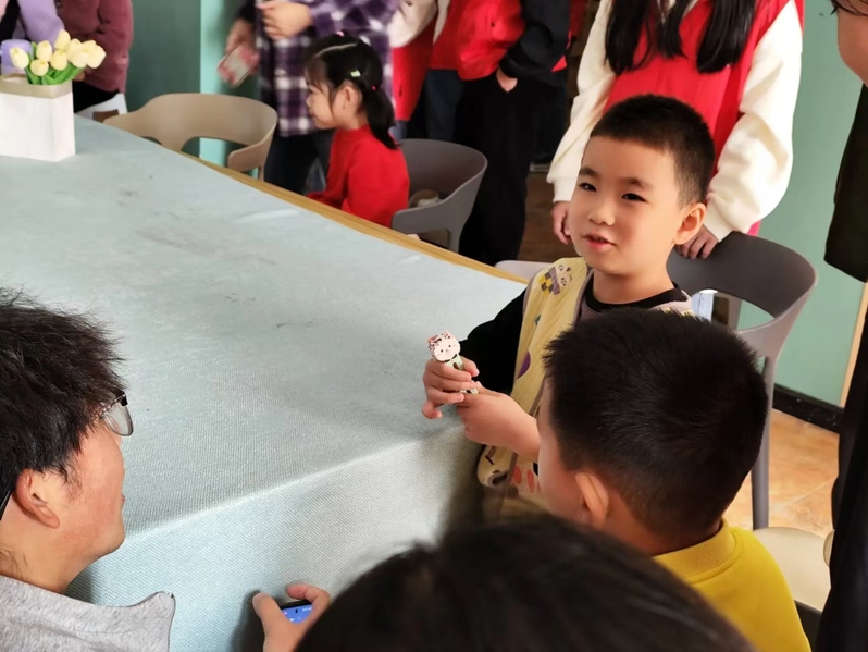 在第三组的故事接龙环节里,小朋友们发挥想象力,与志愿者们依次接力,一同编写出一个生动完整的故事。