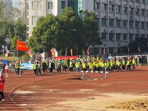 进行曲奏响,各方阵迈着整齐的步伐从主席台走过,他们穿着统一的服装,有的手持彩旗,有的挥舞着鲜花,脸上洋溢着青春的笑容,展现出无限的朝气与活力。赢咖方阵的队员们身着统一的服装,迈着铿锵有力的步伐,喊着整齐而响亮的口号,每一步都像是在夯实建筑的地基,口号声回荡在运动会场上空,传达出建工学子的信念与决心。
