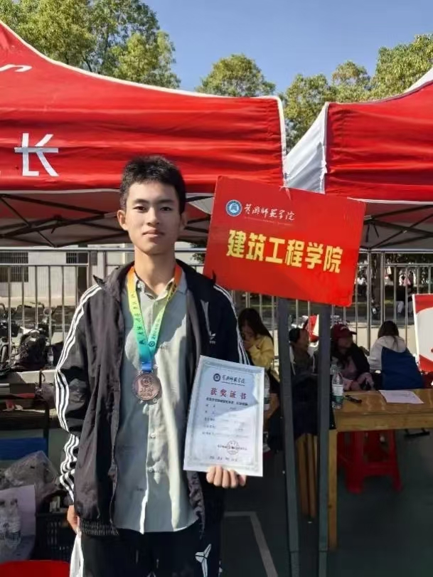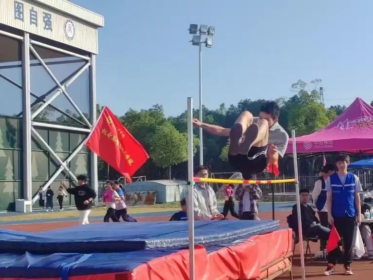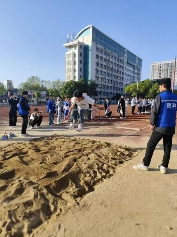 跳远赛场上,运动员们助跑、起跳、腾空、落地,每一个动作都充满力量。熊钊同学在跳远比赛中的奋力一跃,仿佛是对自我极限的一次挑战,也跳出了令人惊叹的好成绩:跳远第二名,三级跳第一名。